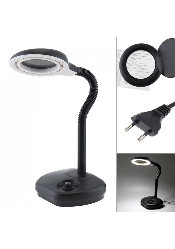 Bu büyüteç masa lambası, ışık için dimli ayarlanabilen 40 LED ışığa sahiptir ve büyüteç, bir nesnenin boyutunun beş veya on katına kadar izleme imkanı verir.