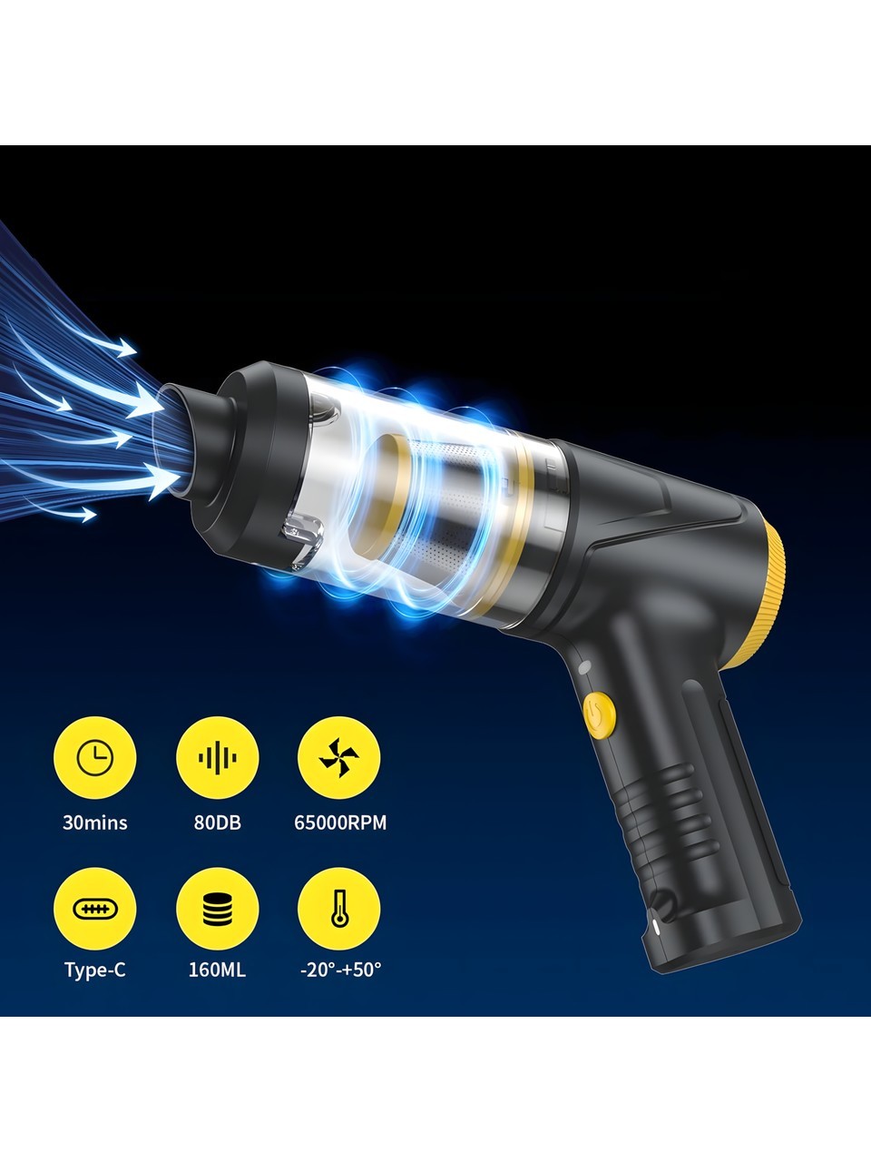 4in1 Çok Fonksiyonlu Type-c Şarjlı 12000PA El Süpürgesi LED Işıklı, Hepa Filtreli LT-145